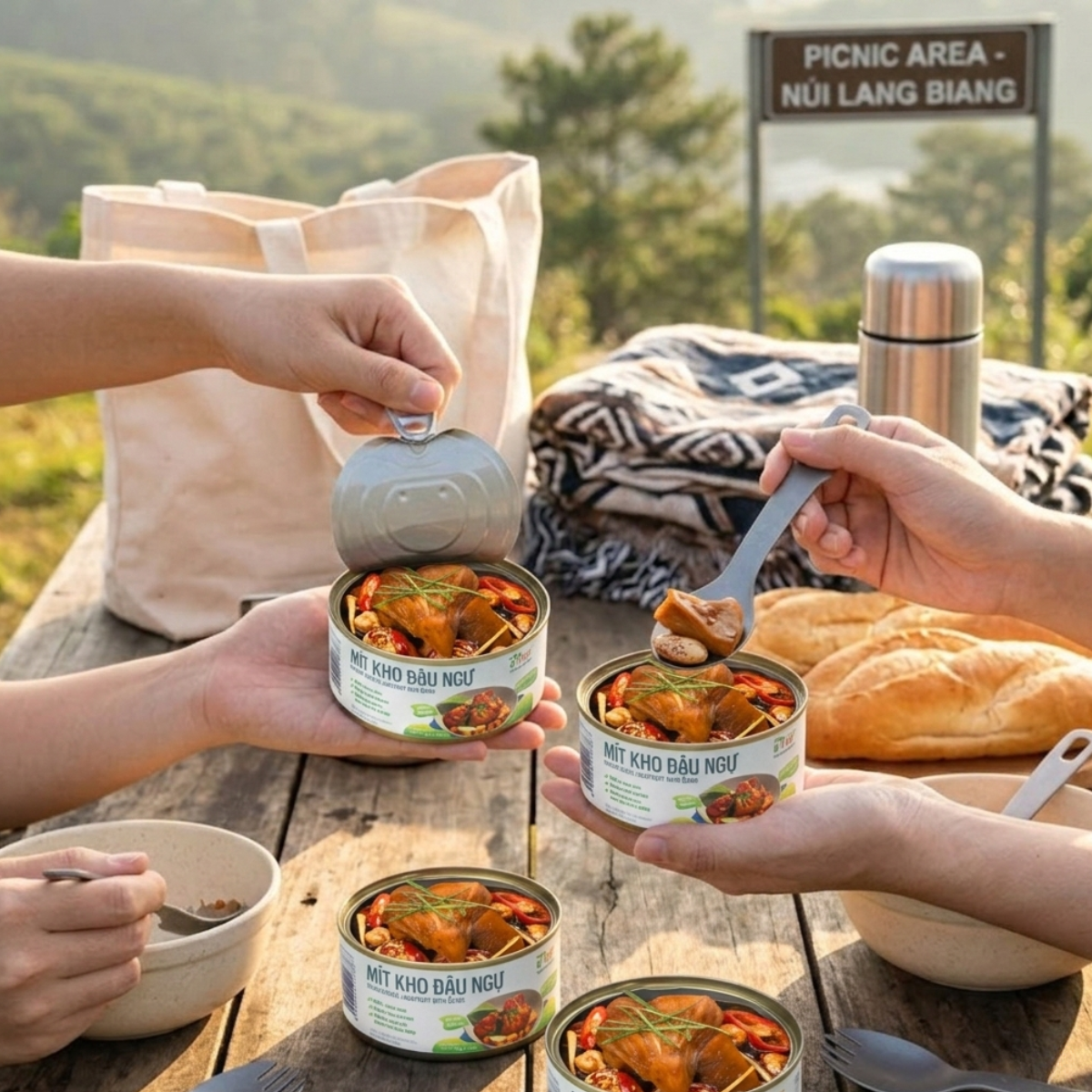 | Thành phần | Mít 50%, đậu ngự 10%, đậu gà, lá chanh, gừng, ớt, tiêu, sắn dây, dầu hướng dương, hành, bột nêm ngưu báng. |
